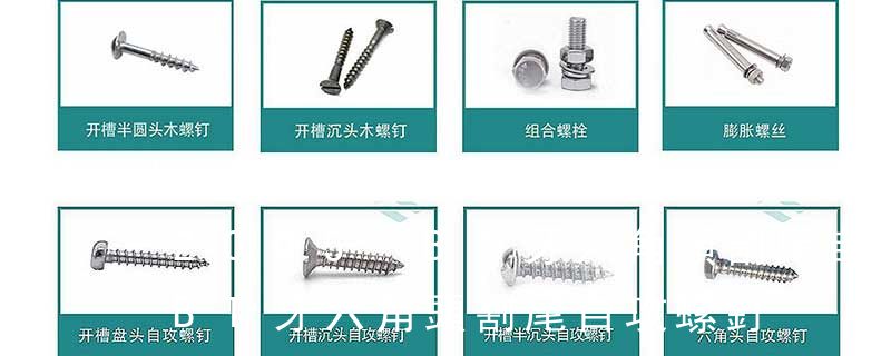 1.機(jī)螺釘 2.自攻螺釘 3.鉆尾螺釘 4.墻板釘 5.纖維板釘 6.木螺釘7.六角木螺釘 8.不脫出螺釘 9.組合螺釘 10.微型螺釘 11.家具螺釘 12.電子螺釘 頭型 :1.六角頭(hexagon head) 2.六角頭法蘭面(hexagon head