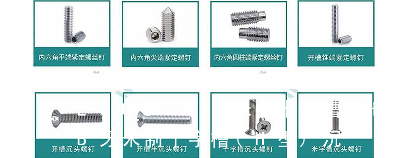 1)開槽普通螺釘多用于較小零件的連接。它有盤頭螺釘、圓柱頭螺釘、半沉頭螺釘和沉頭螺釘。盤頭螺釘和圓柱頭螺釘?shù)尼旑^強度較高,瑁在普通的部件連接上;半沉頭螺釘?shù)念^部呈弧形,安裝后它的頂端略外露,且美觀光滑,一般