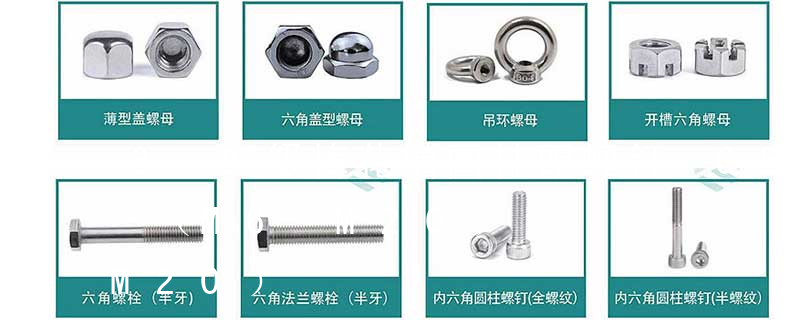 M代表米制螺紋,比如,M8*1.25*50意思是公稱直徑為8mm螺距為1.25螺桿長度為50mm;L表示螺栓的長度,D表示公稱直徑。 規格標準——GB標準 方頭螺栓 C級 GB 8-88 沉頭方頸螺栓 GB 10-88 沉頭帶榫螺拴 GB 11-88 半圓頭方 十字槽盤頭自攻螺釘GB845-85、內六角螺釘GB/T70、1-2000方頭螺栓GB8-88、標準彈簧墊圈GB93-87十字槽沉頭自攻螺釘GB846-85、六角頭螺栓全螺紋GB/T5783T41-2000、C級方頭螺母GB39-88、圓柱槽頭螺釘。