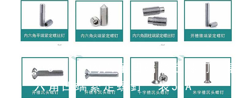 緊定螺釘通常由鋼或不銹鋼材料制造,它的端頭形狀有錐形、凹形、平頭形、圓柱形和階梯形等。錐端或凹端緊定螺釘的端頭直接頂緊零件,一般用于安裝后不常拆卸處;平端緊定螺釘的端頭平滑,頂緊后不損傷零件表面,用于需經常調節位置的 止付螺絲就是一端為內六角,另一端有好幾種標準。螺絲,也有人叫它“螺釘”[Screw] (螺絲釘)、“螺桿”(螺絲桿)。其實螺絲是通稱,而螺絲釘、螺絲桿都是互有區別的。螺絲釘一般叫木螺絲;是前端有尖頭的那種,螺