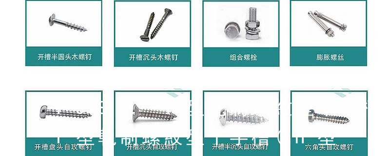 1、Flat:平頭 (鎖入后,頂部與工作件齊平)2、Oval:色拉頭、O頭、半沉頭 3、Round:圓頭 4、Pan:圓扁頭 5、Truss:大圓扁頭 6、Hex:六角頭 A-5:Finish Code/外觀處理。公制自攻螺絲 :于品名后方直接標示 Tapp 六角花形等;內扳擰:一字槽、十字槽H型、十字槽Z型、十字槽F型、四方槽、復合槽、內花鍵、內六角花形、內三角、內六角、內12角、離合器槽、六葉片型槽、高扭矩十字槽等。3、螺紋種類螺紋種類繁多,有自攻螺紋(