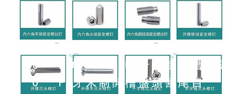 1.機(jī)螺釘 2.自攻螺釘 3.鉆尾螺釘 4.墻板釘 5.纖維板釘 6.木螺釘7.六角木螺釘 8.不脫出螺釘 9.組合螺釘 10.微型螺釘 11.家具螺釘 12.電子螺釘 13.鏈帶螺釘頭型:1.六角頭(hexagon head)2.六角頭法蘭面(hexagon head with