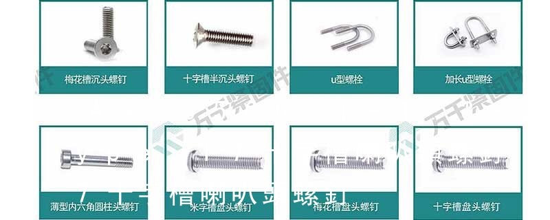 Bugle 喇叭頭Truss 盤頭帶墊Pozi 米制槽Phill 十字槽Serra-tion 墊下帶花Flower Head 開花頭6-bobes recess 內梅花Piston bolt 活塞螺釘Winding bolt 線圈螺釘Hexagon head bolts-full thread 六角頭螺栓 全螺紋Carriage bolt 馬車螺栓Squa